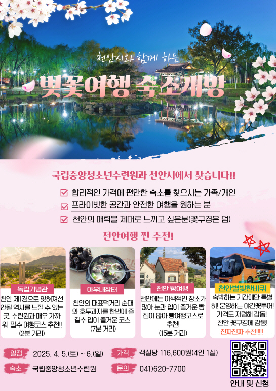 ![]() [º¢²É ¿©Çà ¼÷¼Ò°³¹æ Æ÷½ºÅÍ/»çÁø=±¹¸³Áß¾Óû¼Ò³â¼ö·Ã¿ø Á¦°ø] õ¾ÈÀÇ º¢²É°ú ÇÖÇ÷¹À̽º¸¦ µ¿½Ã¿¡ Áñ±æ ¼ö Àִ Ưº°ÇÑ ±âȸ ±¹¸³Áß¾Óû¼Ò³â¼ö·Ã¿ø¿¡¼´Â 4¿ù 5ÀϺÎÅÍ 6ÀϱîÁö õ¾È¹æ¹®ÀÇ ÇØ¸¦ ¸Â¾Æ ´ë±¹¹Î ¼÷¼Ò°³¹æ Çà»ç°¡ ¿¸°´Ù°í ¹àÇû´Ù. À̹ø Çà»ç´Â ¾Æ¸§´Ù¿î º¢²É ½ÃÁð¿¡ ¸ÂÃç ÁøÇàµÇ¸ç, º½ÀÇ Á¤¼ö¸¦ ¸¸³£ÇÒ ¼ö Àִ Ưº°ÇÑ ±âȸ¸¦ Á¦°øÇÑ´Ù. ±¹¸³Áß¾Óû¼Ò³â¼ö·Ã¿øÀÌ À§Ä¡ÇÑ Ãµ¾ÈÀº ´Ù¾çÇÑ ¸Ô°Å¸®¿Í Áñ±æ °Å¸®°¡ dz¼ºÇØ, ¿©Çà°´µé¿¡°Ô Å« Àα⸦ ²ø°í ÀÖ´Ù. õ¾ÈÀº ƯÈ÷ º½Ã¶ º¢²ÉÀÌ ¸¸°³ÇÏ´Â ½Ã±â¿¡´Â ±× ¾Æ¸§´Ù¿òÀ» ÀÚ¶ûÇϸç, ±¹¸³Áß¾Óû¼Ò³â¼ö·Ã¿øÀº ÀÌ Áö¿ª¿¡¼ º¢²ÉÀ» Áñ±â±â¿¡ ÃÖÀûÀÇ Àå¼Ò·Î ¼Õ²ÅÈù´Ù. À̹ø ¼÷¼Ò°³¹æÀ» ÅëÇØ, ¹æ¹®°´µéÀÌ Ãµ¾ÈÀÇ ÀÚ¿¬°ú ¹®È¸¦ ÇѲ¯ üÇèÇÒ ¼ö ÀÖµµ·Ï µ½´Â´Ù. ![]() [±¹¸³Áß¾Óû¼Ò³â¼ö·Ã¿ø Àü°æ/»çÁø=±¹¸³Áß¾Óû¼Ò³â¼ö·Ã¿ø Á¦°ø] ¶ÇÇÑ Ãµ¾È½Ã¿Í Çù·ÂÇÏ¿© 4¿ù 4Àϰú 5ÀÏ Àú³á 'õ¾Èº°ºûÇѹÙÄû' °ü±¤Áö ¼øÈ¯¹ö½º°¡ ¿î¿µµÈ´Ù. 'õ¾Èº°ºûÇѹÙÄû'´Â õ¾ÈÀÇ º¢²É°ú ÇÖÇ÷¹À̽º¸¦ µ¿½Ã¿¡ Áñ±æ ¼ö Àִ Ưº°ÇÑ Åõ¾î·Î, ¾Æ¸§´Ù¿î ¾ß°æ°ú ÇÔ²² º¢²ÉÀ» ¸¸³£Çϸç õ¾ÈÀÇ ¸í¼ÒµéÀ» µ¹¾Æº¼ ¼ö ÀÖ´Â ±âȸ¸¦ Á¦°øÇÑ´Ù. 2025³â º½ ±¹¸³Áß¾Óû¼Ò³â¼ö·Ã¿øÀ¸·ÎÀÇ ¹æ¹®À» ÃßõÇÑ´Ù. º½¹Ù¶÷À» ¸ÂÀ¸¸ç º¢²ÉÀ» Áñ±â°í, õ¾ÈÀÇ ´Ù¾çÇÑ ¸Å·ÂÀ» °æÇèÇÒ ¼ö ÀÖ´Â À̹ø ±âȸ¸¦ ³õÄ¡Áö ¸»ÀÚ ![]() ¸¶ÀÌ´º½ºÄÚ¸®¾Æ/À¯¸íÁ¶ ±âÀÚ