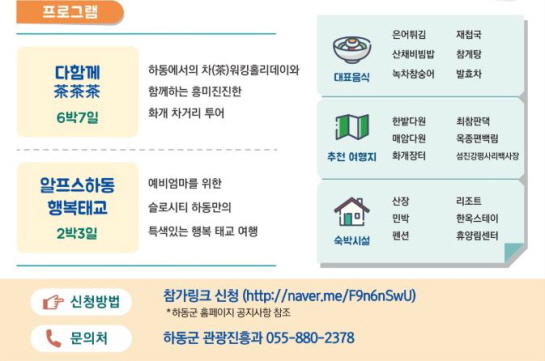Çϵ¿±º, 2020 °æ³²Çü ÇÑ ´Þ »ìÀÌ ¼±Á¤¡¦´ÙÇÔ²² ÒþÒþÒþ¡¤Å±³ ¿©Çà Âü°¡ÀÚ ¸ðÁý Çϵ¿±ºÀº »ýȰÇÏ¸ç ¿©ÇàÇÏ´Â Àå±âü·ù ¿©Çà ÇÁ·ÎÁ§Æ® 2020 °æ³²Çü ÇÑ ´Þ »ìÀÌ ¡®Èï¹ÌÁøÁøÇÑ Çϵ¿¿¡¼ÀÇ ÀÏ»ó¡¯ Âü°¡ÀÚ¸¦ ¸ðÁýÇÑ´Ù°í 19ÀÏ ¹àÇû´Ù. °æ³²Çü ÇÑ ´Þ »ìÀÌ »ç¾÷Àº ÆÐŰÁö¿©Çà¿¡¼ üÇ衤ü·ùÇü °³º°ÀÚÀ¯¿©ÇàÀ¸·Î ¿©ÇàÆ®·»µå º¯È¿¡ ´ëÀÀÇϱâ À§ÇØ ¹ß±¼ÇÑ »ç¾÷À¸·Î, µµ³» 18°³ ½Ã¡¤±ºÀ» ´ë»óÀ¸·Î Áö¿ª Ư¼ºÀ» ¹Ý¿µÇÑ ÇÑ ´Þ »ìÀÌ °ø¸ð¸¦ ÅëÇØ ¿ÃÇØ óÀ½ ÃßÁøµÈ´Ù. Èï¹ÌÁøÁøÇÑ Çϵ¿¿¡¼ÀÇ ÀÏ»ó¡¯Àº Çϵ¿ ÂþÀÙ µû±â ÀÏÀÚ¸®¿Í ¿¬°èÇÑ ÀÚÀ¯¿©Çà ¡®´ÙÇÔ²² ´Ù´Ù´Ù(ÒþÒþÒþ)¡¯¿Í ¿¹ºñ ¾ö¸¶ÀÇ ¸ö°ú ¸¶À½À» ì±æ ¼ö ÀÖ´Â Çϵ¿¸¸ÀÇ Æ¯»öÀÖ´Â ¡®¾ËÇÁ½º Çϵ¿ Çູ ű³ ¿©Ç࡯À¸·Î ±¸¼ºµÆ´Ù. ¸ÕÀú ´ÙÇÔ²² ÒþÒþÒþ´Â õ³âÀÇ ÇâÀ» °£Á÷ÇÑ ÂþÀÙ µû±â, ÀüÅë ´Ù·Ê Ã¼Çè, ¼öÁ¦ ´÷À½Â÷ Á¦´Ù üÇè, Çϵ¿ ÀüÅëÂ÷ ¸íÀΰú ÇÔ²²ÇÏ´Â Â÷ À̾߱â, ´Ù¿ø±æ ¼ø·Ê, ½½·Î½ÃƼ ¾Ç¾ç Åõ¾î, Çϵ¿ 10°æ Åõ¾î µîÀ¸·Î ÀÌ·ïÁø´Ù. ű³ ¿©ÇàÀº ÃÖÂüÆÇ´ì ±Ô¹æ ű³, ű³ ÆÊÆÄƼ, ÀÓ»êºÎ ½É¸® »ó´ã±³½Ç, ű³ »çÁø ÃÔ¿µ, ÀüÅë ¾ß»ýÂ÷ ´Ù·Ê üÇè, ÀÓ»êºÎ üÇü ±³Á¤ üÇè, ¿¡ÄÚ¸¾ÀÇ »ê°ñÀÌÀ¯½Ä üÇè, õ¿¬¿°»ö üÇè µîÀ¸·Î ÁøÇàµÈ´Ù. ÇÑ ´Þ »ìÀÌ Âü°¡ÀÚ¿¡°Ô´Â ÃÖ¼Ò 3ÀϺÎÅÍ ÃÖ´ë 7ÀÏ À̳»ÀÇ ±â°£ µ¿¾È ÇÏ·ç 5¸¸¿ø À̳»ÀÇ ¼÷¹Úºñ¿Í ´Ù¾çÇÑ ¹®È¿¹¼ú üÇ衤³ó¾îÃÌ Ã¼Ç衤°ü±¤Áö ÀÔÀå·á µîÀÌ Áö¿øµÇ¸ç, °³ÀÎ À¯Æ©ºê, ºí·Î±×, SNS µîÀ» ÅëÇØ Çϵ¿ÀÇ °ü±¤ ÀÚ¿øÀ» È«º¸ÇÏ´Â ¹Ì¼ÇÀ» ¼öÇàÇÏ°Ô µÈ´Ù. Âü°¡ ½ÅûÀº °æ³²Áö¿ª ¿Ü °ÅÁÖÀÚ·Î ¸¸18¼¼ ÀÌ»óÀÌ¸é ´©±¸³ª °¡´ÉÇϸç, ´ë»óÀÚ ¼±Á¤¿¡ ÀÖ¾î û³â¡¤¿©ÇàÀÛ°¡¡¤ÆÄ¿öºí·Î°Å µî Çϵ¿¿¡¼ÀÇ °ü±¤À» Àû±Ø È«º¸ÇÒ ¼ö Àְųª Äڷγª19·Î ÁöÄ£ ÀÇ·áÁø¡¤ÀÚ¿øºÀ»çÀÚ´Â ¿ì´ëÇÒ °èȹÀÌ´Ù. ¸ðÁý ±â°£°ú ÇÁ·Î±×·¥ ÀÏÁ¤ µî ÀÚ¼¼ÇÑ »çÇ×Àº Çϵ¿±º °ü±¤ÁøÈï°ú ½½·Î½ÃƼ´ã´çºÎ¼(055-880-2378)·Î ¹®ÀÇÇÏ¸é µÈ´Ù. ![]() ¸¶ÀÌ´º½ºÄÚ¸®¾Æ/¾ÈÁ¤È¿±âÀÚ